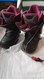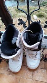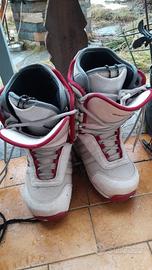 Scarponi da snowboard da donna e da uomo usati ma ben tenuti a 35 euro al paio.