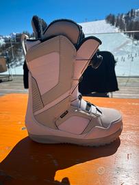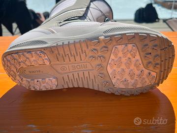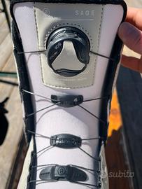 Vendo scarponi da snowboard RIDE mod.SAGE donna taglia 38 US 7-UK 5 - Mondo 24. Vendo per taglia errata. Indossati solo un giorno quindi nuovi. The Sage is made for comfort and ease of use. This boot will go anywhere and keep your feet warm and comfortable all day long. Fitted with Intuition™ Plush Foam Liners and the H4 BOA® Coiler Fit System, which provides a uniform fit to your foot. The Closer™ Lace Guide evens the lace tension across the entire boot. C.A.T. technology allows for a custom fit in the calf zone for increased comfort. Lock Down™ Turbo provides secure, no slack liner lace hold. Grip Lite 2.0 Sole combines +Slime Midsole with rubber pods for durability and traction. The Sage is a medium flexing boot for riders of all ability levels