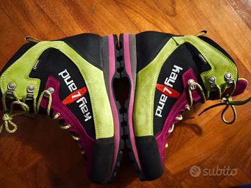 Scarponi da donna Kayland XM Lite GTX ws, numero 40 (vedi foto per dettagli), praticamente nuovi (vedi foto), usati solo due volte (2!) per breve passeggiata su sentiero battuto. Solette mai utilizzate (messe solette personali). Ottimo prodotto ed occasione.