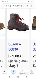 Vendo ottimi scarponi in cuoio della Scarpa numero 42. Modello 80830. Usati per camminate in montagna ma ottimi anche per lavori boschivi. Sempre tenuti puliti e ingrassati. Prezzo nuovo vedi foto allegata.
