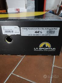 Vendo scarponi ramponabili marca LA SPORTIVA modello Karakorum Evo GTX Antracite/rosso, taglia 44 e 1/2. Comprati l'estate scorsa (modello precedente all'ultimo come colori), usati poche volte cedo per cambio progetto. Come da foto suola in ottimo stato. Scarpa che non ha bisogno di tante presentazioni, affidabile e valida per escursioni di alta quota ed alpinismo. Grazie alla fodera in Gore-Tex impermeabile e traspirante, scarpa adatta anche all'uso intensivo caccia. Per contatti telefonici, chiamare dopo le 17, prima non riesco a rispondere