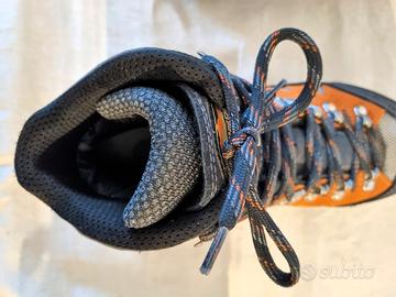 Scarponi Meindl Himalaya MFS 2525 55. Pari al nuovo perché usati una sola volta per una breve escursione. Misura 7 ½ UK (41,5 UE). Ideali per trekking di alto livello anche in quota, oltre che per lavoro, caccia, attività outdoor in genere. Tomaia in NABUCK bicolore arancio/grafite con resistente bordo in gomma, fodera in GORE-TEX che offre garanzia di impermeabilità e traspirabilità, suola Meindl Multigriff by VIBRAM per una eccezionale aderenza su qualsiasi terreno, plantare AIR-ACTIVE SOFT PRINT. Dotati di sistema MFS (Memory Foam System), una particolare schiuma interna, permettono una calzabilità precisa senza punti di pressione nella zona delle caviglie. Inoltre, il sistema DIGAfix assicura un’allacciatura ottimale evitando dolorosi schiacciamenti sul collo del piede, mentre l’inserto in PU sul tallone è compatibile con molti ramponi.