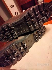 Scarponi da montagna e per tutti gli usi, con il blocco dell'allacciatura alla caviglia, anche ramponabili, taglia 50, in vera pelle fuori e dentro, morbidissimi, nuovi mai utilizzati, colore marrone (scatola originale non disponibile).