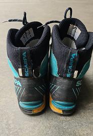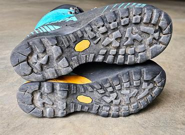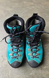 Vendo scarponi di marca Scarpa , modello donna Ribelle OD misura 38, con scatola originale. Best seller del marchio, semi-ramponabile da alpinismo in pelle, leggero e Made in Italy. Vendo per cambio misura del piede e passaggio a taglia più grande. Gli scarponi sono chiaramente usati, anche se la suola è ancora molto buona. Segnalo che internamente in corrispondenza dello sperone la fodera è lisa in entrambi gli scarponi, dovuto ad usura.