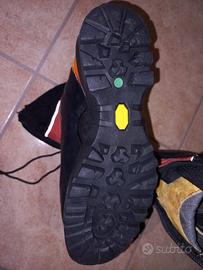 Scarponi rigidi invernali per alpinismo, ghiaccio e alta quota con ghetta integrata. Caldi (imbottitura Primaloft), Utilizzati poco, solo per alpinismo invernale e racchette. Ghetta perfetta, mai ramponata, zip funzionante, suola praticamente nuova (camminato sempre sulla neve). Taglia 37, lunghezza soletta 24,5 cm (purtroppo il numero non si legge più e ho perduto la scatola).