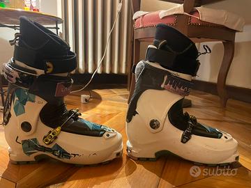 Scarponi sci alpinismo La Sportiva Starlet 2.1 Taglia 38, scafo 233 mm Caratteristiche Tecniche Principali Materiali: Scafo e linguetta in Grilamid®, materiale rigido ma estremamente leggero che permette di ridurre lo spessore delle pareti senza perdere potenza. Peso: Circa 1040 grammi per scarpone (misura 25), ideale per chi cerca velocità e comfort nelle lunghe escursioni. Escursione di Movimento: Offre un'ampia mobilità della caviglia di 68° in modalità walk, facilitando una falcata naturale durante la salita. Sistema di Chiusura: Utilizza il sistema Fast Lock System(TM) con tecnologia Vertebra (in nylon rinforzato con carbonio), che permette di passare dalla modalità salita a quella discesa con un unico movimento agendo sulla leva superiore. Ganci: Dotato di ganci Pegasus Buckle(TM) che consentono una micro-regolazione precisa della tensione con un peso ridotto. Barrabes Barrabes +6 Performance e Comfort Flessibilità: Ha un flex indicativo di 90, reattivo quanto basta per godersi la discesa ma tollerante. Inclinazione: L'angolo di attacco è regolabile su tre posizioni: 12°, 14° o 16°. Isolamento: Include la soletta interna estraibile WarmSole(TM) in poliuretano, che isola il piede dal freddo dello scafo. Suola: La suola LazerGrip(TM) garantisce trazione su terreni misti e rocce grazie a una mescola di gomma ad alta aderenza. Compatibilità Attacchi: È compatibile con attacchi Tech e con il sistema Ski Trab TR2 grazie a speciali inserti nel tallone.