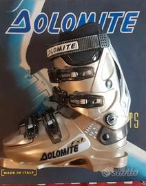 Scarponi da Sci Alpino nuovi di zecca e mai usati, compresi di imballaggio, scatolone (che preenta segni del tempo) e manuale originali. Sono di colore Opale/Bronze, misura 22.5 (270mm/ 36 circa di scarpe) e modello femminile (Lady). Gli scarponi sono un modello non nuovissimo, di circa 5 anni fa, ma le condizioni sono impeccabili. Possiedono una serie di caratteristiche tipiche degli scarponi di alta qualità, quali la regolazione dell'inclinazione laterale del gambale (Canting), il Dolomite Energy Frame che ne rinforza la struttura del tallone, i Micro Lock che permottono una facile e sicura chiusura dei lacci, 14 regolazioni della posizione dei lacci e il Heel Lock per bloccare in posizione il tallone.