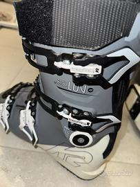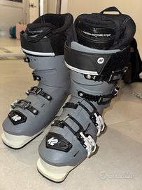 Anthem 80 MV di K2 È ricco di tecnologia. Il gambetto regolabile specifico per la conformazione femminile permette una calzata perfetta indipendentemente dalla lunghezza della gamba o dalla forma del polpaccio.