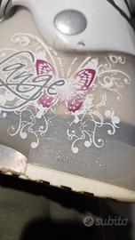 Vendo scarponi da sci per bambina / bimba (se non si guardano i decori anche bambino / bimbo) Lange taglia 22,5 corrispondente a 33 / 34. Scafo 268mm. 4 chiusure.