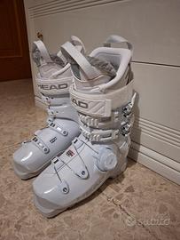 Scarponi da sci HEAD KALIBER 95. Scarponi praticamente nuovi, messi due volte. Vendo per misura sbagliata. Indice di durezza 95 portabile a 105. Misura dello scarpone 240/245 mm equivalente ad un 38/39. Aggancio della pianta con tecnologia BOA super comoda, mentre agganci dello stinco classici. Hanno anche il grip walk sotto per riuscire a camminare meglio. Vendo con diversi accessori compresi all'acquisto degli scarponi. Prezzo poco trattabile.
