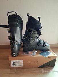 suole in gomma anti scivolo, compatibili con attacchi da sci alpinismo, sgancio dello stivaletto in modalità "walk".