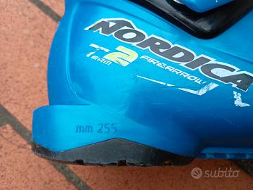 Scarponi sci da bambino NORDICA T2 FIREARROW a 2 ganci. Lunghezza suola 255mm, misura interna da 200 a 215 che corrisponde ad una calzata di piede 31/34 Ideale per sciatori principianti e intermedi, permettono inoltre di inserire e togliere facilmente il piede.