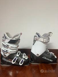 Scarponi da sci Nordica (Mondopoint 24–24,5) numero 37 in ottime condizioni. Usati ma perfettamente funzionanti, ideali per chi vuole iniziare o sciare senza spendere troppo. Dotati di interno imbottito Extra Warmth, molto caldo e confortevole anche nelle giornate più fredde. Presentano inoltre sistema Adjustable Cuff Profile, che permette di adattare meglio la parte superiore dello scarpone alla gamba per una calzata più comoda e personalizzata. Design elegante bianco e nero con dettagli rossi, sportivo e facilmente abbinabile al resto dell’attrezzatura. Chiusura con ganci regolabili tutti perfettamente funzionanti. Normali segni di utilizzo esterni, ma struttura solida e pronta all’uso. Perfetti per ragazzi/e o adulti.