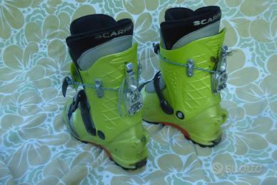 Scarponi scialpinismo Scarpa F1 “vissuti” misura 41 - 26, lunghezza scafo 292, molto comodi e funzionali, ma con riparazione sul soffietto che stava crepandosi, cucito e sigillato, scarpette in buone condizioni ma una è riparata perchè rovinata durante termoformatura. Per iniziare a fare scialpinismo con poca spesa. 25 euro spediti.