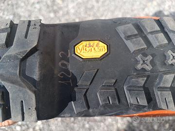 Taglia 26/26,5 (40-41) Come nuovi, usati pochissimo. - Flap: Grilamid 60% fibra di vetro, - Polsini: Grilamid, in fibra di carbonio - Fodera: termica rivestimento in EVA - Shell: Grilamid - Ghetta: tessuto Cordura - Suola: Vibram PROCLINE