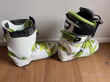 Scarponi Scialpinismo Donna Dynafit Tg.24. Taglia piede 36/max 37 veste piccolo. Modello TLT5 Montain. Usati ma in ottime condizioni sia lo scafo che la scarpetta interna termoformabile.Completi di linguettoni aggiuntivi per irrigidire lo scarpone in discesa.