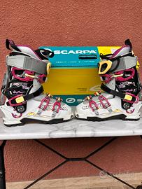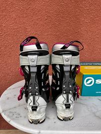 Vendo scarponi da scialponismo da donna, marca Scarpa modello GEA RS, misura 23 (271 mm). Usati, condizioni buone con normali segni di usura vicino ai ganci e su punta e tacco. Consegna in zona Busto Arsiizio, Milano, Pont Saint Martin.