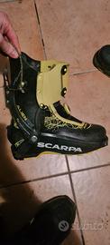 Vendo scarponi da scialpinismo Scarpa Alien RS, taglia 29.0 (lunghezza scafo 310 mm). Scarponi appena revisionati ufficialmente dalla casa madre (Scarpa). Esteticamente presentano normali graffi da utilizzo. Contattare solo se realmente interessati, no perditempo.