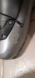 Sono scarponi molto leggeri e bloccano discretamente per la discesa. uno degli scarponi ha un piccolo foro causato da una ramponata, usato due stagioni con lo scotch americano senza che entrasse acqua.