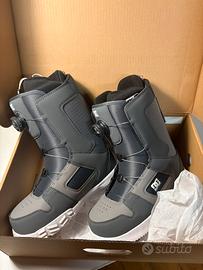Vendo scarponi da snowboard de shoes modello phase boa, grigio, numero 40 europea, confezione e cartellini originali. Gli scarponi non sono MAI stati indossati, neanche per prova in negozio, acquistati e conservati chiusi in scatola, tirati fuori solo per scattare le foto.