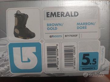 NUOVI! ANCORA NELLA SCATOLA ORIGINALE! Messi una volta e poi non più usati.Scarponi snowboard donna 35 Burton Emerald, professionali, avvolgenti, TOP della gamma, favolosi, perfetti, intatti nuovi dentro la scatola. Colore marrone