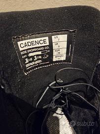 Scarponi snowboard da donna marca Ride modello Cadence con chiusura doppio BOA. Condizioni impeccabili come visibile dalle foto. Taglia EU 38 - 240 mm - 24 cm - US 7 - UK 5 • Sistema di allacciatura H3 dual BOA Focus; • LSD C.A.T. – Tecnologia di regolazione del polpaccio; • Scarpetta Intuition Mobile Foam Wrap; • Suola Michelin Summit. Non dispongo della scatola originale. Per favore, no offerte ridicole visto il prezzo di listino di 349 euro.