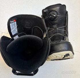 Vendo scarponi da snowboard Head modello Legacy con sistema di chiusura rapida BOA. Gli scarponi sono stati utilizzati per una sola settimana, sono in condizioni eccellenti, puliti e senza difetti.