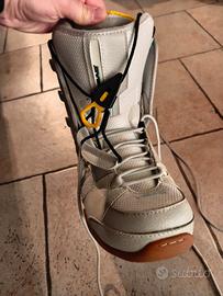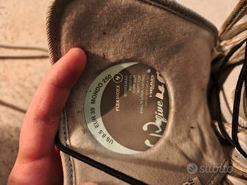 Scarponi usati qualche volta ma in buone condizioni in quanto non sciupati ma solo sporchi nella punta dello scarpone causa neve/fango.