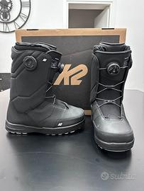 Scarponi snowboard K2 Maysis praticamente nuovi come da foto, vendo per taglia errata provati un ora. Taglia EU 41,5 US 8,5 CM 26,5 Prezzo di listino 400, prezzo in negozio fisico 360, vendo a 250