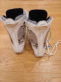 Scarpone per snowboard donna nitro tg.40. Con lacci bianchi e fissaggio. Morbidissimi Disponibile a parte la tavola nitro donna momert 146 con attacchi.
