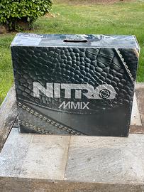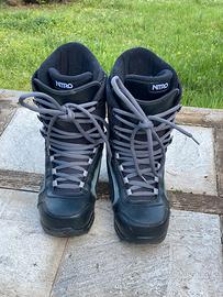 Scarponi da snowboard della Nitro, taglia 42. Gli scarponi sono in ottime condizioni (usati solo per due stagioni invernali) e non presentano difetti strutturali nè di altro tipo. Li vendo con la loro scatola, comoda per il trasporto. Caratteristiche principali: - Sistema TLS (Twin Lacing System) - Scarpetta Cloud Liner - Suola in gomma/EVA Lo scarpone è pulito, igienizzato e pronto all'uso.