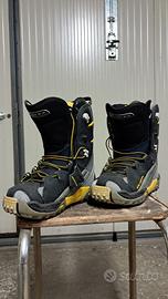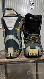 Scarponi Snowboard Salomon numero 42. Uno scarpone presenta un gancetto delle stringhe rotto ma si possono allacciare lo stesso.