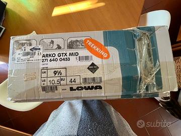 Pensionato per motivi di salute non posso più coltivare il mio amore per la montagna e quindi con grande rammarico vendo scarponi marca LOWA modello ARKO in GORE-TEX nuovi e mai indossati n. 44 color cammello, pagati € 170