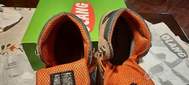 scarponi da trekking marca Olang, n. 39, In tessuto impermeabile Olantex e pelle, suola in Vibram. Usati 4 volte da mio figlio e poi basta per cambio numero. Validi sia in estate che in inverno con la neve. Con scatola