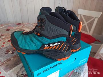 Scarponi usati solo due volte, che ho deciso di vendere per misura sbagliata. Praticamente nuovi. Marca Scarpa Rush Trk Gtx. Ottimi scarponi da Trekking leggeri, resistenti, in gore-tex, suola Presa scarpa. Misura 44 1/2.