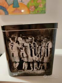 Scatola in latta con coperchio prodotto ufficiale Juventus. Era la scatola del panettone Balocco di qualche anno fa. È in perfette condizioni a parte un alone sul coperchio (foto).