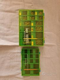 trattasi di tre scatole magnetiche stonfo e precisamente UNA "doppio magnete" misura 80x120x18 e di DUE "super magnete" misura 150x100x14, queste ultime due sono state accoppiate in unico blocco, come e visibile dalle foto, le vendo così come si trovano e comprese degli ami presenti. Sono utili per tutte le tecniche di pesca dal surfcasting, bolentino, paf, bolognese, carpfishing, ecc. Possibilità di consegna a mano zona Tiburtina o aggiungendo la spesa anche la spedizione.