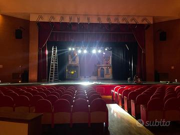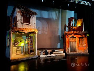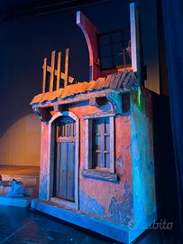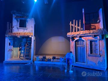 2 strutture su carrelli girevoli, e pareti modulari assemblabili comprensivi di piani di elevazione, realizzati in osb e murali in sezione 8×8, rivestiti con texture muro invecchiato.