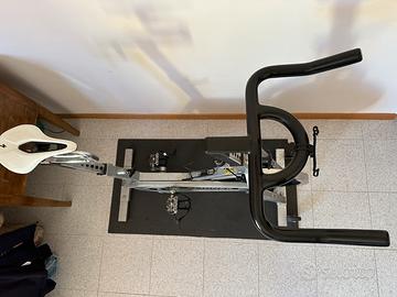 Bicicletta da spinning in buono stato, utilizzata poco, con pattini nuovi e perfettamente funzionante. Per allenamento indoor. Volano da 20kg, freno meccanico.