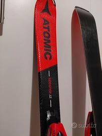 Sci Atomic Redster J2 altezza 130 cm (6- 10 anni) con piastra e attacchi Atomic regolabili in funzione della misura dello scarpone. Buone condizioni estetiche con qualche graffio, fondo e lamine molto buoni.