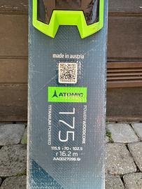 Vendo paio di sci Atomic Redster X7 XT da pista, lunghezza 175 cm, sciancratura 115.5–70–102.5 mm, raggio di curva 16.2 metri.