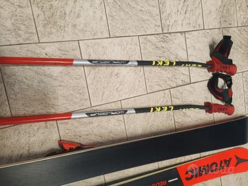 Sci Atomic S7 cm 170 r.15 +Bastoncini Leki cm130 con sgancio rapido al guanto.Gli sci sono sempre stati preparati in laboratorio e hanno ruggine sulle lamine e segni li vendo per fine attività scistica di mio papà..