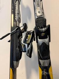 sci con attacchi, racchette e custodia