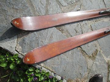 Vendo sci d'epoca di fine anni '30 , con attacchi di tipo Kandahar con marchi Super Dolomiti Olimpico, lunghezza cm 187, lamine in barrette avvitate, condizioni molto buone, del tutto solidi; spedizione con corriere euro 15.