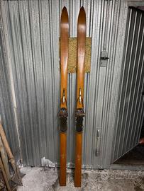Splendida coppia di sci d'epoca in legno massello, un autentico pezzo di storia dello sport invernale. Questi sci sono perfetti per collezionisti, amanti dello stile alpino e per l'arredamento di chalet, rifugi o ambienti a tema montano.