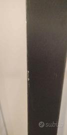 Uno sci ha due pezzetti del fondo un pochino rovinati, uno riparato uno no (come da foto). Attacchino perfettamente funzionante, forato per scarpone 305mm e con slitta di regolazione. Sci non più riforabile causa precedente foratura, chiusa da professionisti senza il minimo problema osservato finora.