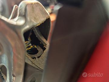 Di per sé sono tenuti molto bene, però in uno sci c'è l'attacco del tallone rotto nel senso che si è staccato un pezzo di plastica, nell'ultima foto si vede il particolare.