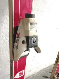 SCI DA DISCESA KASTLE ANNIM 80 VINTAGE, CON ATTACCHI 757 SALOMON, PERFETTAMENTE FUNZIONANTI, ALTEZZA 188 CM , COPPIA DI BASTONCINI, UNO ALTO 124 CM , L'ALTRO 125 CM, PERFETTI PER COLLLEZIOSTI, PER ALLESTIMENTI A TEMA ANNI 70, DI NEGOZI, ESPOSIZONI, MUSEI, O COME ACCESSORI D'ARREDAMENTO PER BAITE O CASE DI MONTAGNA.
