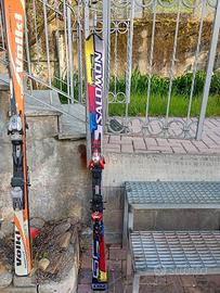 Vendo anche separatamente sci da discesa come in foto completi di attacchi fondo perfetto lamine da ripassare anche separatamente. 25 euro volki e salomon blu 40 euro per salomon rossi, vedere misure e dettaglio in foto. Preferibile consegna a mano