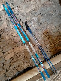 sci da fondo con racchette e scarpe numero 40 con sotto le squame x non scivolare in dietro.